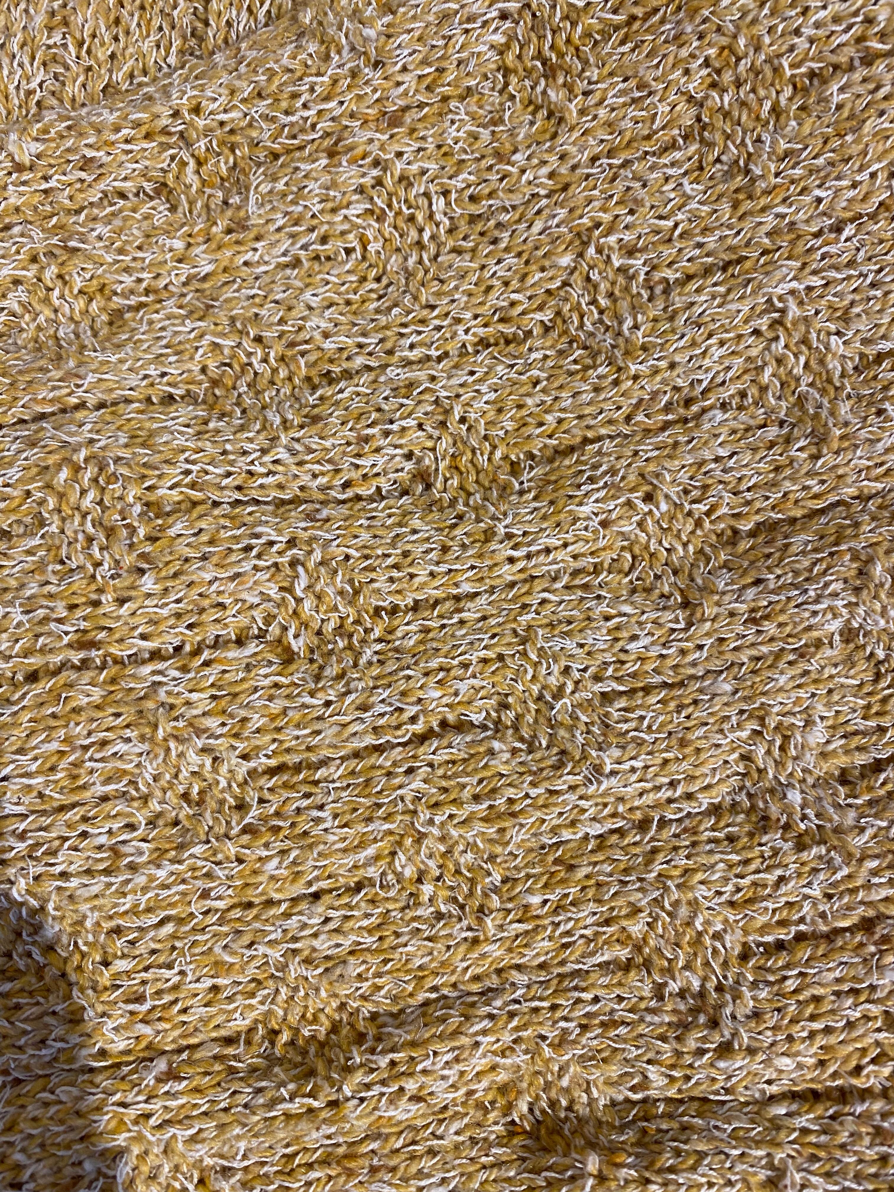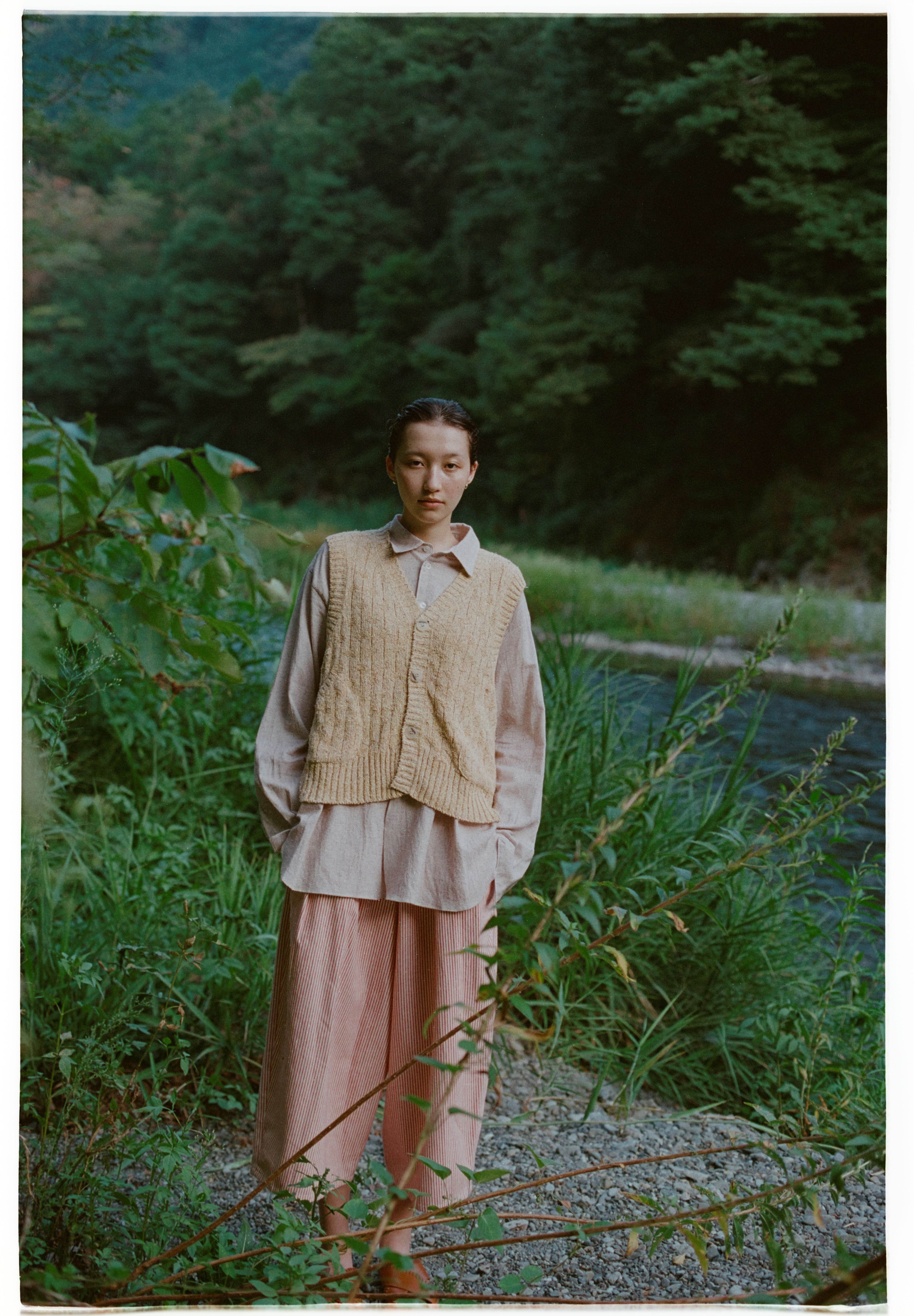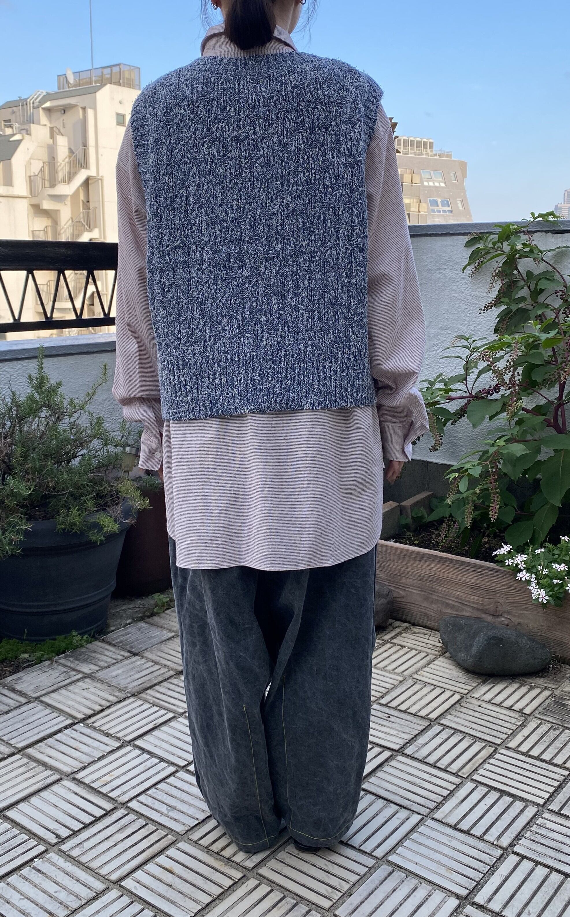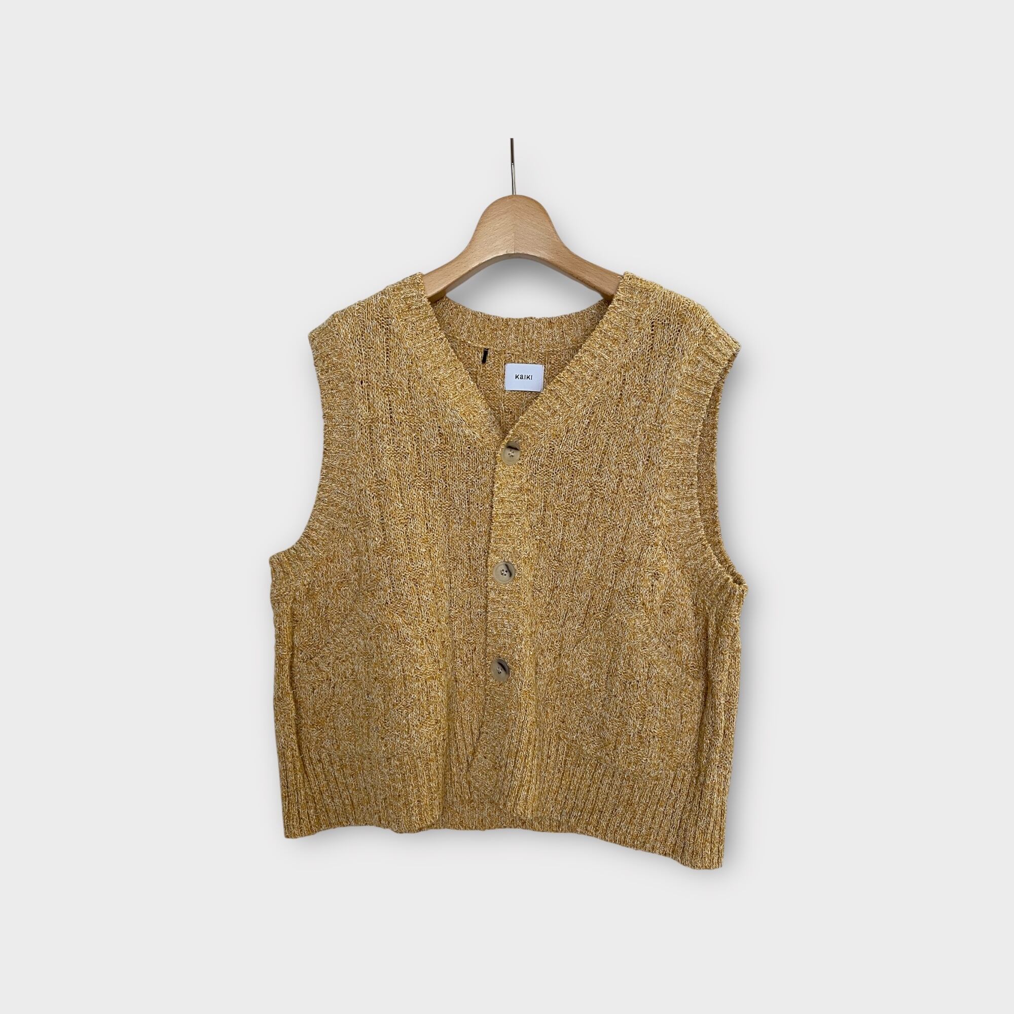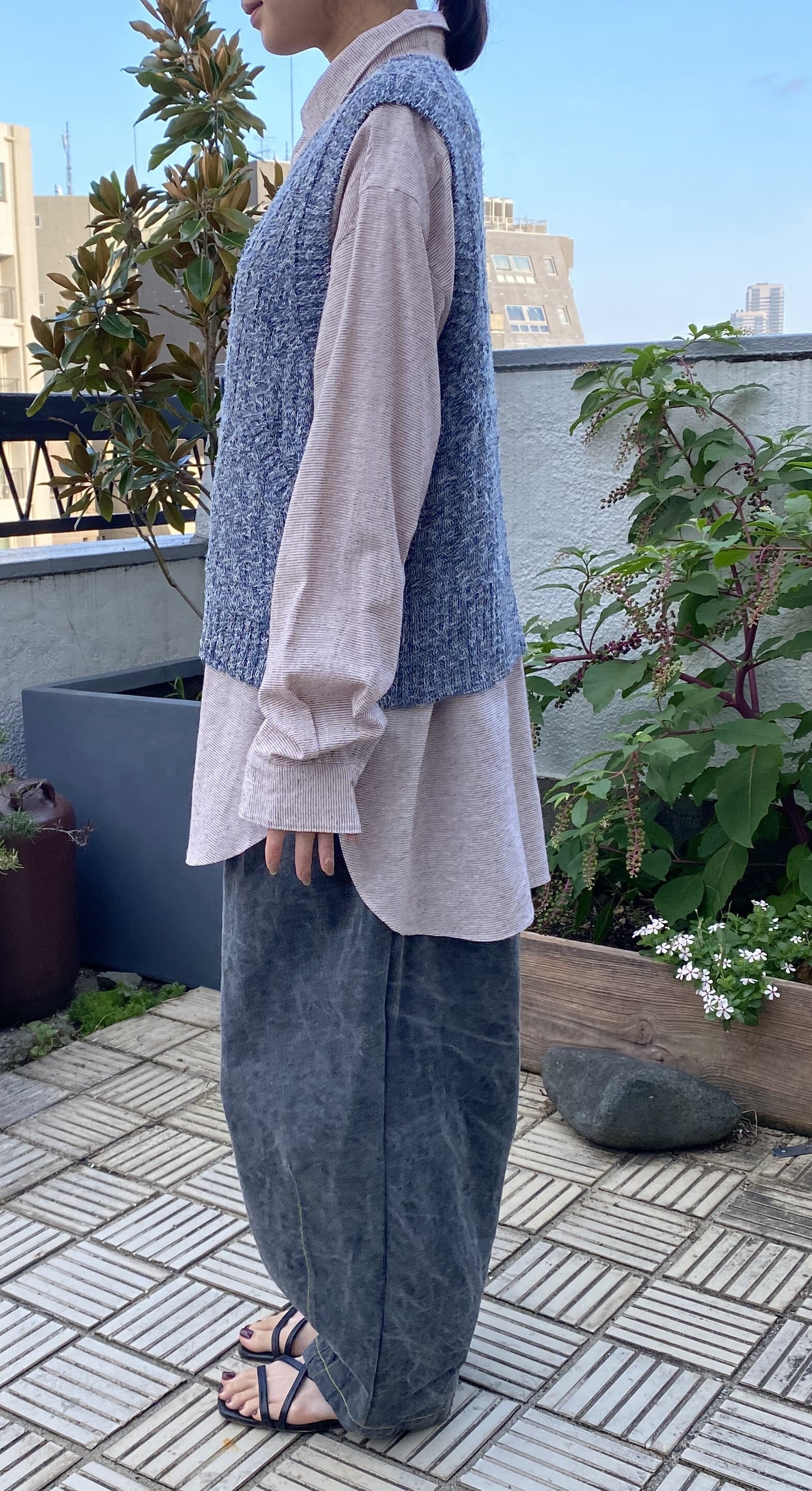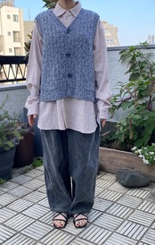 コットンリネンシルクジャカードベストは、リサイクルネップ糸を使用したオリジナルのジャカード柄が際立つ魅力的なアイテムです。軽やかで心地よい着用感を楽しめ、ヴィンテージ風のデザインです。