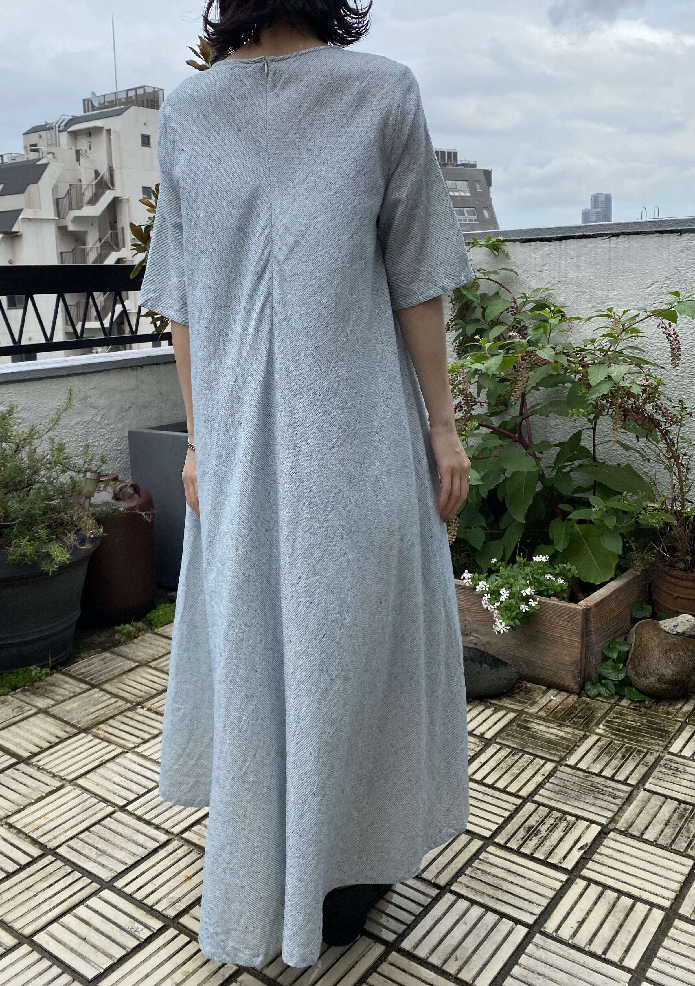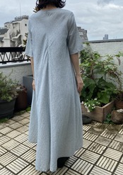 シルクネップボーダーバイアスフレアワンピースは、綿にシルクのネップ糸を混ぜ込むことで生まれる独特の風合いが魅力のアイテムです。後ろ身頃をバイアスで生地を裁断することで、身体のラインを美しく見せつつ、フレアなシルエットが女性らしさを引き立てます。ウエスト付属のひもでマークすることで、シルエットを自由に変化させられ、様々なシーンでのスタイリングを楽しむことができます。